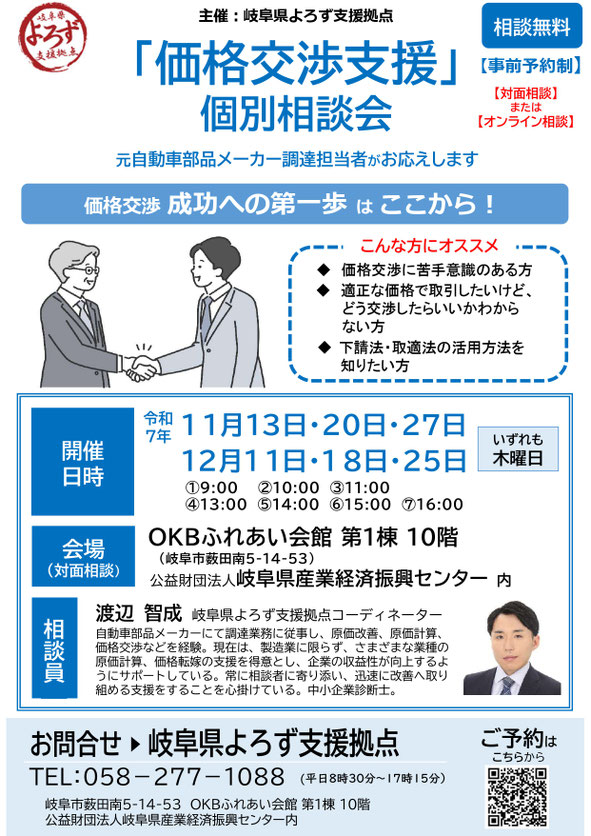 対面会場:OKBふれあい会館10階 岐阜県よろず支援拠点